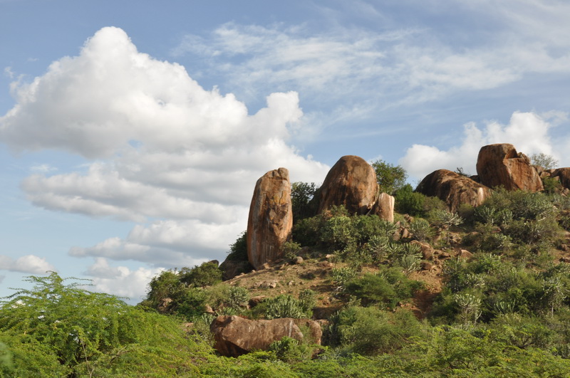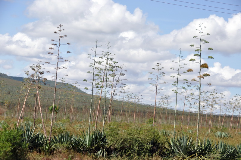 The road passses through sisal plantations, and there are some odd shaped hills.