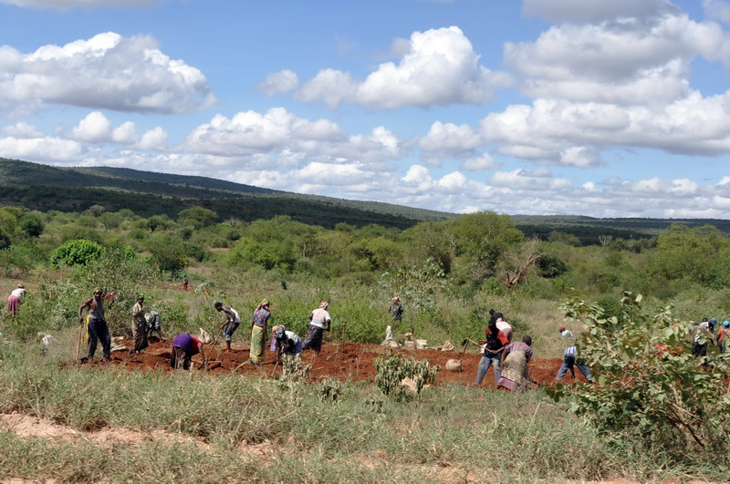 The whole extended family out working the shamba.