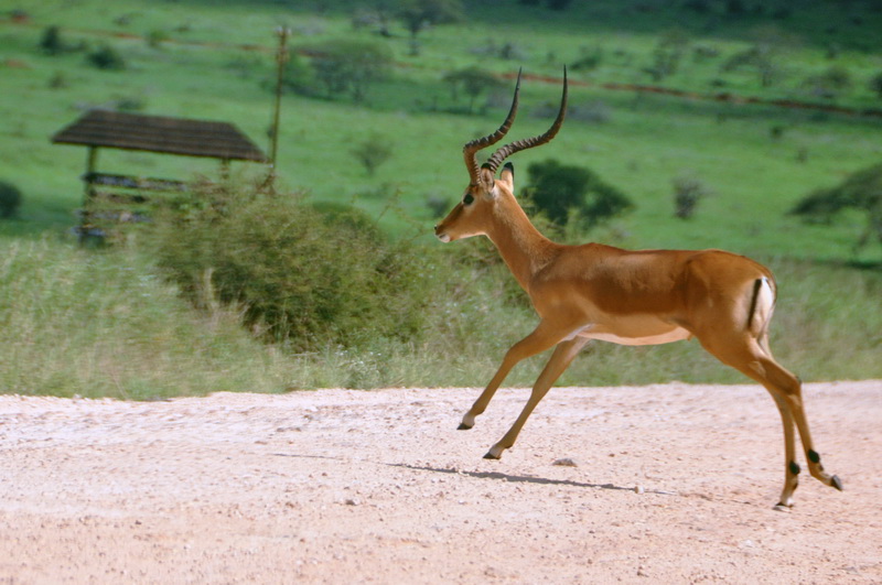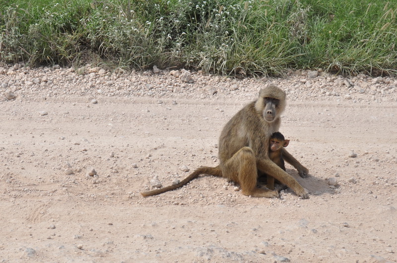 We were passing through Tsavo West National Park, but there were few animals to be seen: baboons