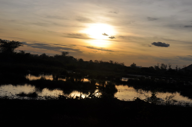 Sun setting over the Lake Jipe wetlands.