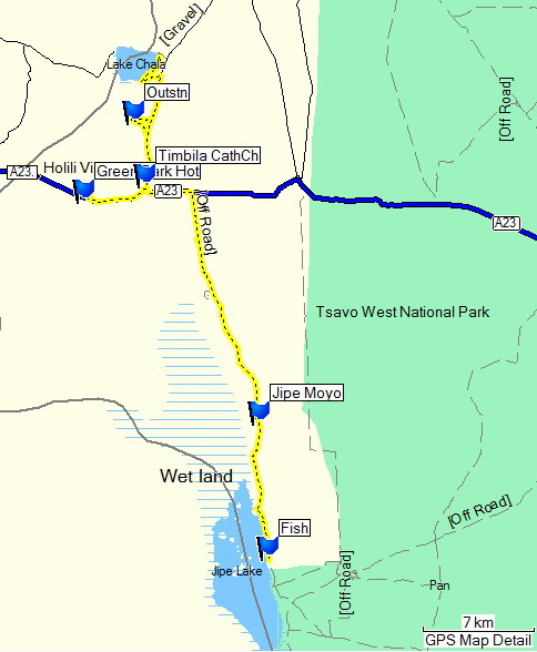 We headed along a gravel road (which was bumpy enough) before turning up this "road" to Lake Chala.