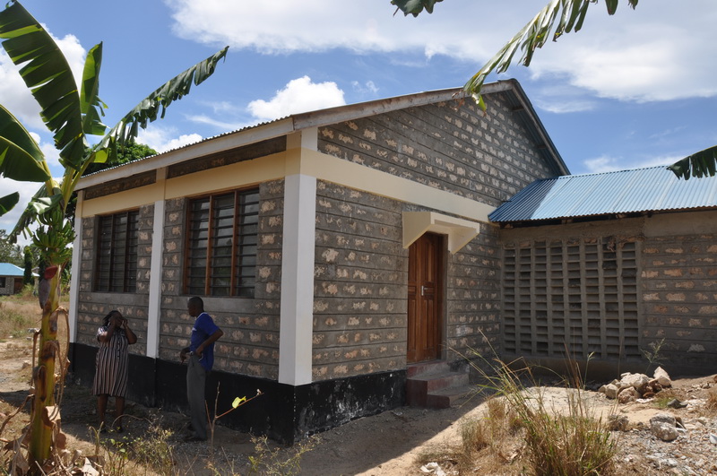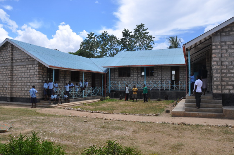 On the left are 4 classrooms, built to take a further 4 on top in the future. On the right is the dining hall and kitchen.