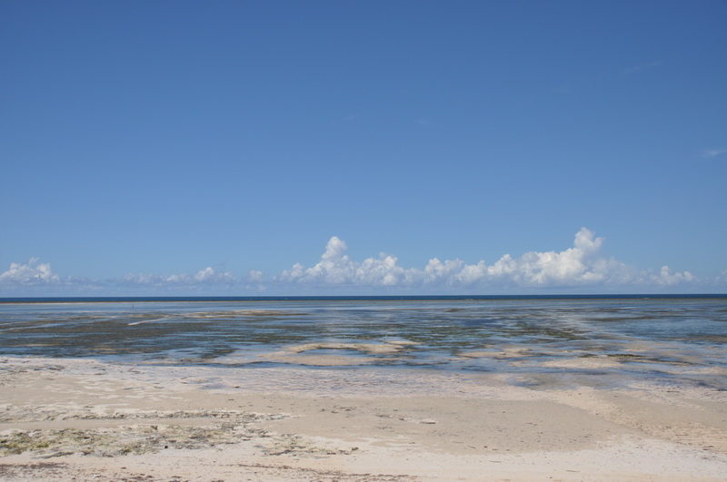 Looking out across the shallow water to the reef.