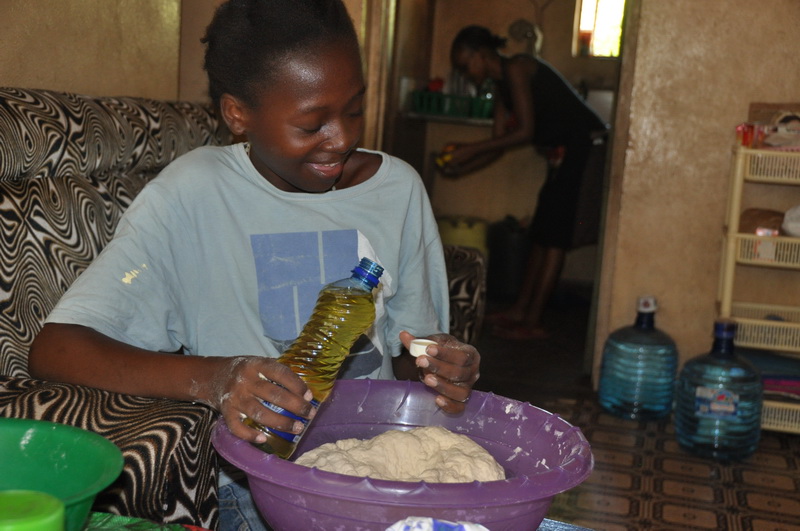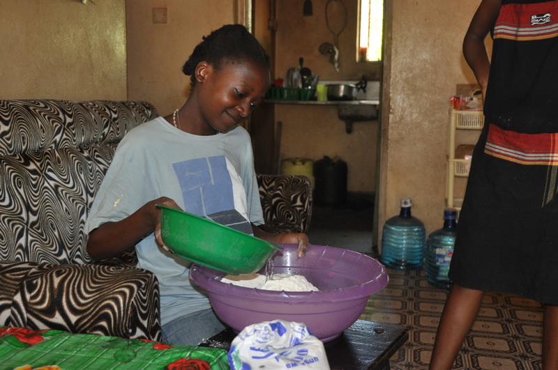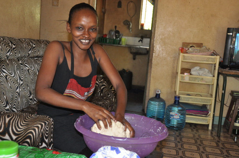 Joe dropped me at Shanzu, where Maggy met me and, after buying sodas, took me to the house where she lives with family friends. Maggy and maryanne had decided they would teach me to make chapatis, and that I would document the process. First, take wheat flour.