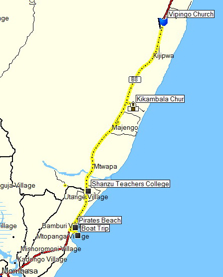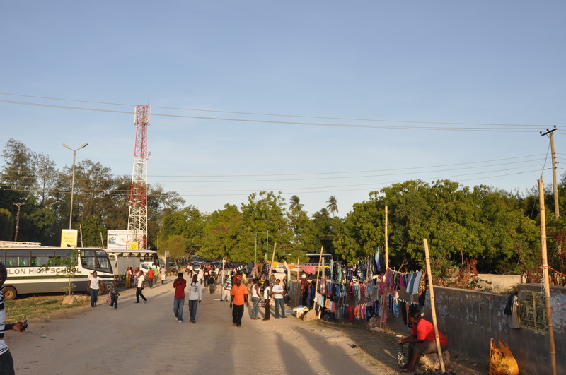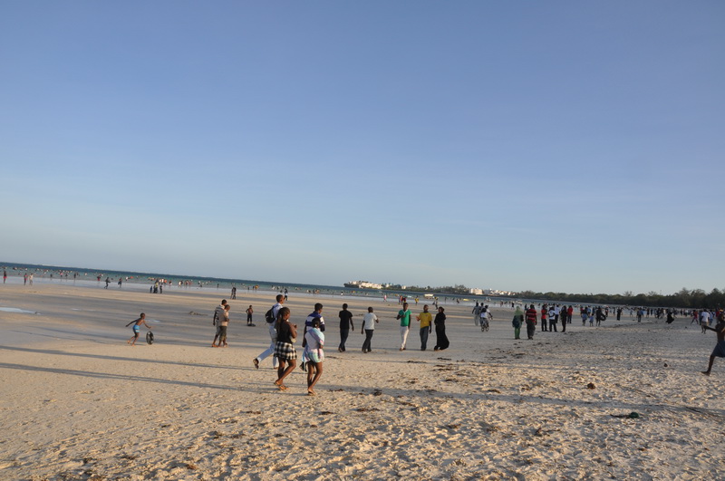 We swam - well, we splashed around in water about 2 feet deep, which was very refreshing - then headed back to Shanzu. The view along the busy beach.