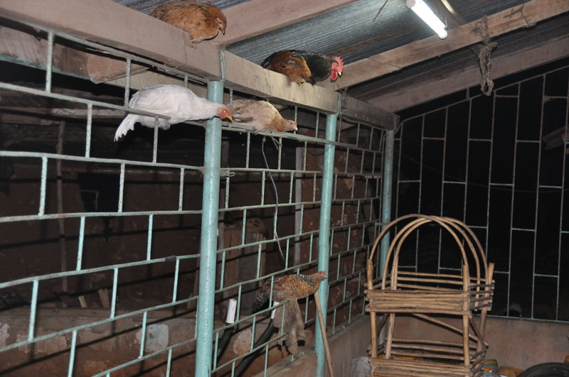 We went out to dinner; on return, we found the chickens roosting in the porch!
