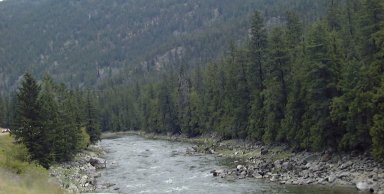 The water comes from the river, bringing water down from the mountains between us and the coast, rising in Manning National Park..