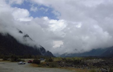 Before Hope we stopped at Hope Slide - back in the 60s a small earthquake triggered a landslip that moved millions of cubic metres of rock, raising the level of the valley floor by 70m, and burying 4 people in their cars. Even now, the rock that moved is visible (in the foreground). Here after a little rain, the clouds clinged to the hillside.