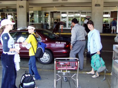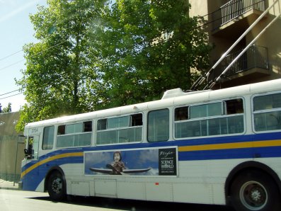 After a brief mail drop at Trish's, we drove past the airport, with a view to dropping Meld, Rosie and Bridget at their downtown hotel. But the traffic was heavy, so we turned back to the airport whence they took a cab. On the way we saw a trolley bus - I don't remember seeing one since the 60s in the UK.