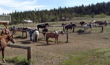 On our return, we helped unsaddle the horses and then to feed them (lobbing hay off the back of a pick-up truck).