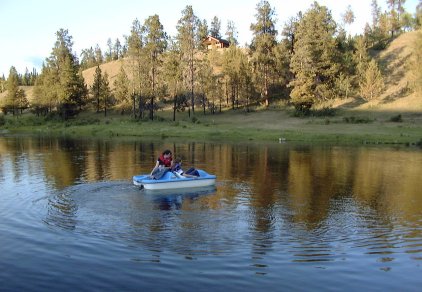 As we walked back, Rosie and Fiona were gesticulating - they'd seen a creature from their pedal boat. We sent Bridget out with Megan in another pedal boat, and sure enough it was a beaver. The fish were jumping for the flies (and the flies were jumping for us!)