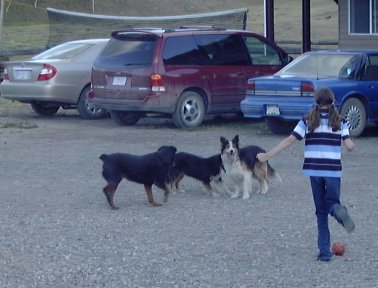 while Bridget played football with the dogs