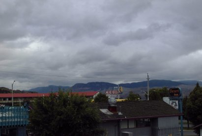 After last night's heavy rain we were hoping for a fine day, but the morning dawned cool with heavy cloud cover, as seen from our motel balcony.