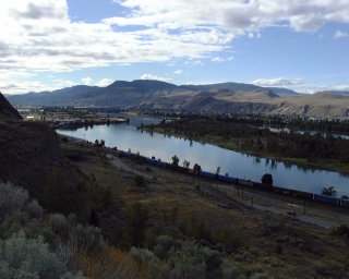 Kamloops gets its name from the Shuswap Indians' word for the meeting of the rivers: the north and south Thompson rivers merge here, into one big river. Later in the afternoon we crossed to the northern side of the Thompson river, and caught this view downstream.