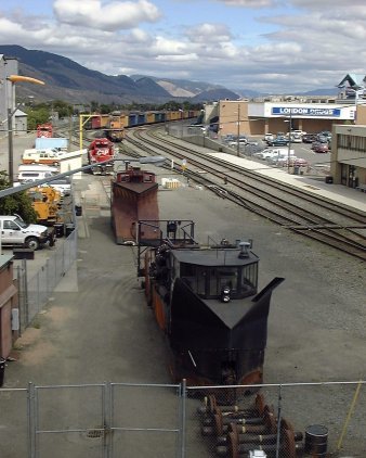 I snapped this view if the huge ploughs used to keep the line clear of snow, along with the CPR tracks through town. In the early years, the tracks ran down main street, getting it the epithet "the longest streetcar in the world". Kamloops was made the divisional HQ for CPR, and also has a CNR line, so it's an important railway town. Every few minutes, it seems, a long train of oil, coal, wheat, lumber or containerised freight rumbles through, accompanied by the "ting-ting-ting" of the bells of the level crossings.