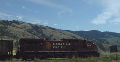 Today we move on from Kamloops. As we head east on Highway 1, there's welcome blue sky, and the company of the trains again.