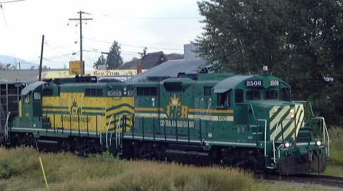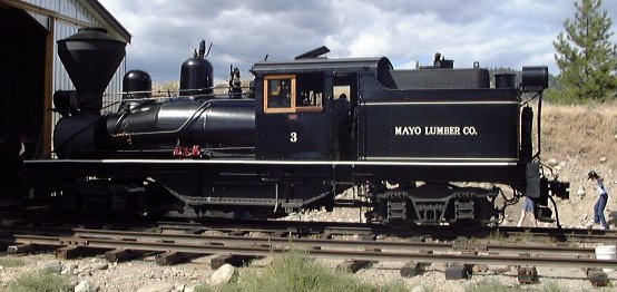 Our route followed the lake south - nice views but little chance to catch them. At Summerland, we picked up the sign for the Kettle Valley Railway, a restored steam railway. We'd missed the two runs for the day, but persuaded the conductor to let us go down and visit the loco as they put it into the shed. Unlike any steam loco I've seen before, it has 8 bevel-gear driven wheels, all pretty small, with the engine itself amidships. Apparently this gave it a high pulling capacity and protected the important bits from damage when the loco fell off the oft-dodgy rails or hit a tree dropped by the preceding train! However, small wheels did mean a lower top speed.