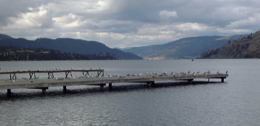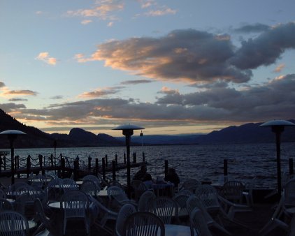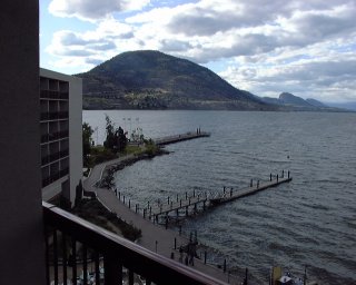 And so, via a roadside fruit stall (this is the fruit growing heart of Canada) to our hotel - the Penticton Lakeside Resort, where we have a lake side room - this is the view from our balcony - and it's just like being at the seaside as the stiff breeze washes the waves up onto the beach below.