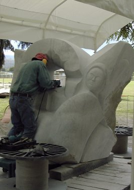 We took a small road round the back of the next lake, and found a small town where they had an international sculpture convention. This man, a Japanese from Victoria, and another Chinaman from Beijing were at work.