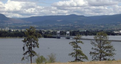 Kelowna itself was chaotic - we went round some back roads to see a heritage church and the mission station and rejoined just before the floating bridge (below) but didn't stop. As we left, the queue for the bridge the other way was a couple of miles long - it's a bank holiday weekend coming up.