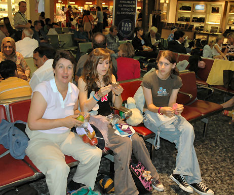 Up early to complete packing, then load the car and we're off soon after 8. Granny's a bit surprised when we turn up with excess food, then we're on the road for Heathrow. The traffic's not bad, and we get parked and bussed over to Terminal 3 without difficulty, even the check-in queue's not too long. So, after a coffee and a bit of shopping, we're sitting in departures - same place as 3 years ago, but this time without the 3 hour delay.