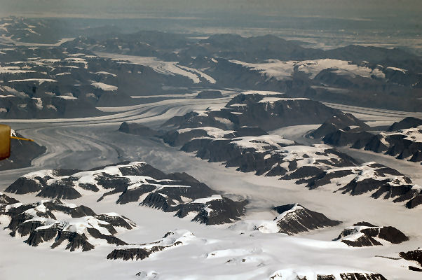 Our route took us north over the Pennines and Scotland then over Iceland - all shielded by cloud. We ate, snoozed, ate more, read, then looked out the window to see that we were crossing the coast of Greenland. This was quite stunning, with the rocks jutting out from an icy sea.