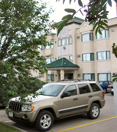 At the airport everything went smoothly - they let us in, we found our baggage safely, and the hire car was as expected (except that the girls are complaining about the colour - I expect Rosie wanted a PINK one to go with her limo!). An interesting drive through heavy stop start traffic brought us to our hotel, where we have settled in and are taking advantage of FREE wireless internet. Here's the Jeep outside our hotel.