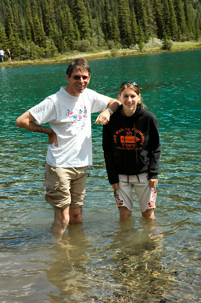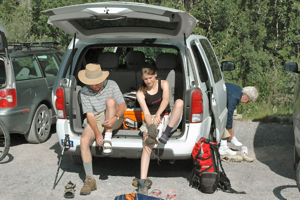 After the descent (and a bit of to-ing and fro-ing where we got separated) we drive to Forget-me-not Lake for lunch and feet-cooling in the very cold lake water.