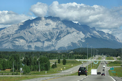 We were on the road from Calgary before 9 - remarkable for us - heading west on Highway 1, the Trans Canada Highway, travelling steadily towards the mountains.