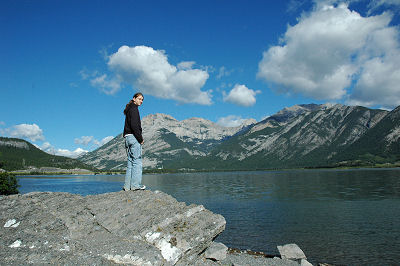 We stopped a few times to take the view - this pretty lake (Lac des Arcs) being one example (careful angle here - there's a cement works on the opposite side of the lake).
