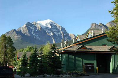 Well, the comfortable beds and cool air of the Lake Louise Inn mean that we all slept well - so well that none of us woke up before 7:30. I walked round the Inn for some pictures in the early morning light.