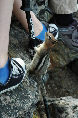 It wasn't long before we were joined by a ground squirrel whose interest in Peter's walking pole was simply that it led to the pastries.