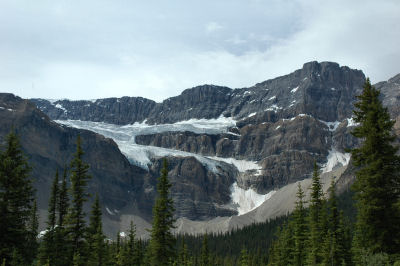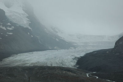 We pressed on north - we still had a good deal of ground to cover - and lunched by the side of a lake. We had thought about going onto the Athabasca Glacier, part of the Columbia Icefield, but the clouds had dropped and were dropping their rain on us, so we looked across from the car park without braving the elements (9°C and drizzly)