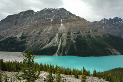 By Bow Summit, at just over 2000m the highest point on the parkway, we stopped to walk up to the lookout over Peyto Lake. The guidebooks give this maximum stars, and it is impressive (and amazingly turquoise) but the press of people onto the lookout meant it didn't have the peace of Moraine Lake. And the clouds had come over, which probably didn't help. Worth a stop, but not quite into the AWESOME category!