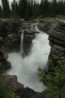 Continuing north, our next stop was Athabasca Falls, where the river has another go at getting through a narrow gap. Even more impressive than Sunwapta, and there are plenty of ways to explore the falls and the old water routes.
