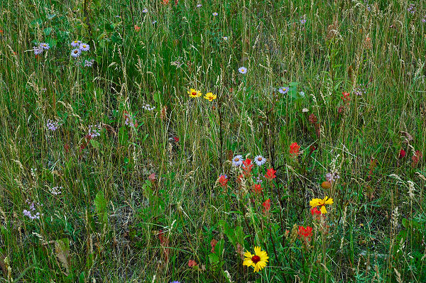 He saw lots of pretty flowers, rain in July meant the flowers were still flowering.