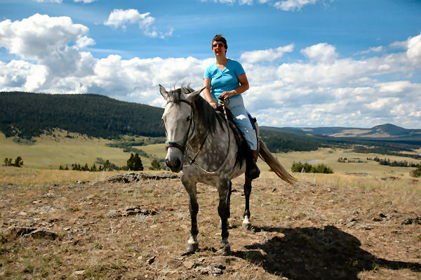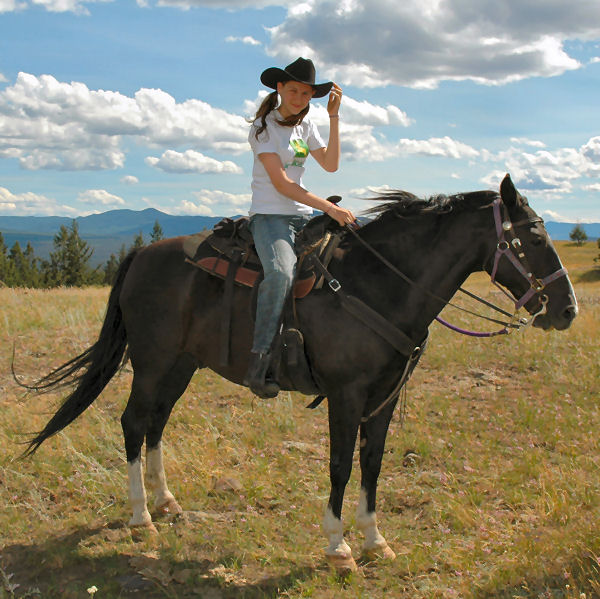 Rosie finally ended up on this horse Misty who had a bit of an attitude towards my Sonny.