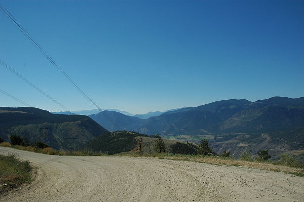 From Kelly Lake the road climbed sharply (and roughly). Then we breasted the summit and were rewarded with this view south as we started the (equally steep) descent towards Pavilion.