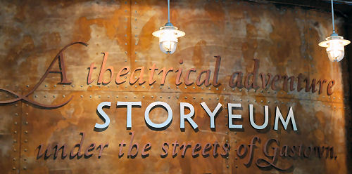 Our final full day in Canada! We breakfasted in the café downstairs then drove north to Canada Place and Gastown. We parked in a multi-storey then headed onto Water Street. Almost immediately we found Storyeum and decided to give it a try. A performance was about to begin... We descended below ground level in a huge lift, then walked through a passageway that actually took us into the basement of another building. We were then given a dramatised story of Vancouver in 8 scenes, from the original native people, the arrival of the Europeans, the gold rush, the building of the CPR, up to the modern day and the future. It was an excellent production, especially on a grey and cloudy morning.