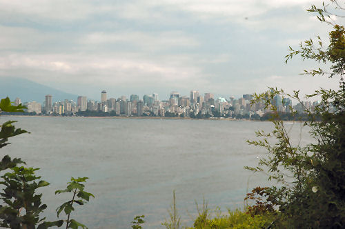 After brunch we headed south over Burrard Bridge - bypassing Granville Island for more peace! We followed the coast around west and south, stopping at Hastings Mill Park from where we got this view back of downtown - it was another cloudy morning.