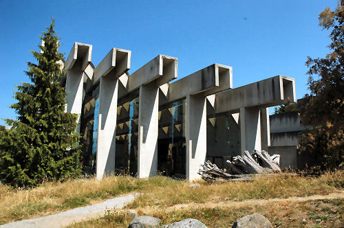 We followed Marine Drive round to Point Grey and through UBC grounds, stopping at the Museum of Anthropology. We didn't have time to go in, but we took the view across to the north