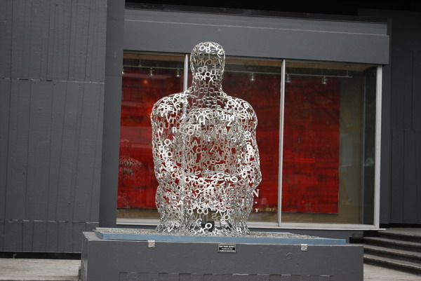 Today we would visit Grouse Mountain, in the north of Vancouver, which meant a drive through the city. Along West Georgia Street we passed various galleries and this piece caught our eye.