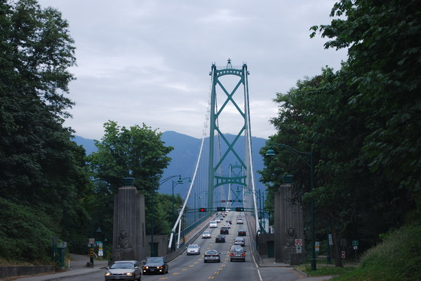 Through Stanley Park on Highway 99, then over Lion's Gate Bridge