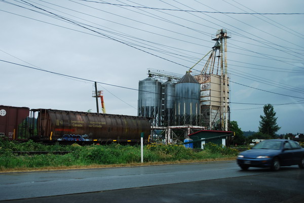 We headed south initially, then east through Surrey and other places on the south side of the Fraser river. Lots of new development out here. At one stage we followed the railway, with typical sights like this grain tanker and grain silo.