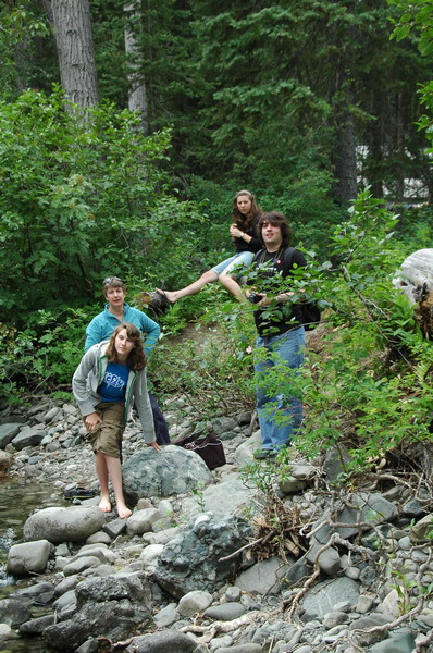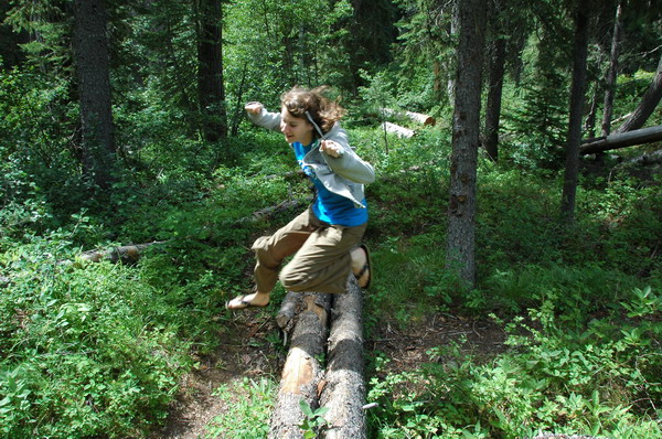 Further on we stopped for a picnic lunch, at a campground beside the Similkameem river. As we walked down to the river, B had to jump the fallen trees.
