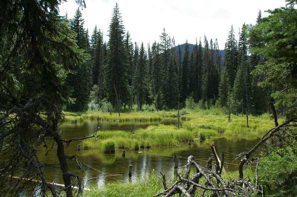 Shortly afterwards we came across Beaver Lake where we stoped 6 years ago, so we stopped again briefly to see this lake, where the beavers brought all the trees down, then moved on.