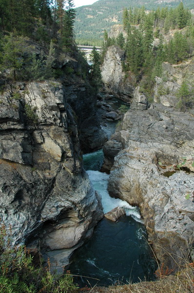 Then back to the motel to find the others only just getting up! We packed, had breakfast at Tim Horton's,shopped for lunch, then headed west on Highway 3 once more. As we crossed the lake we stopped for the view - a fun water feature...