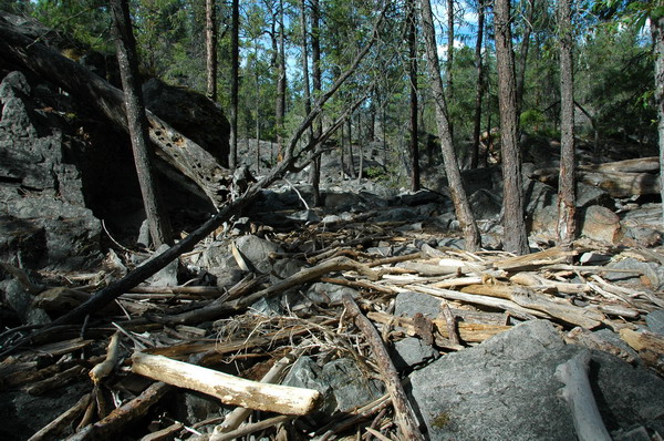 This is the higher ground beside the falls where the spring melt obviously runs through.
