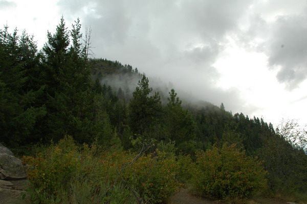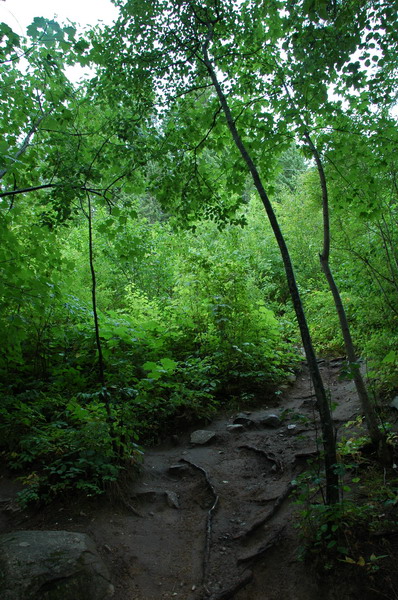 Aid got up early and drove a mile or so down the road to climb to Pulpit Rock. It had rained heavily overnight and everything was cool and green.