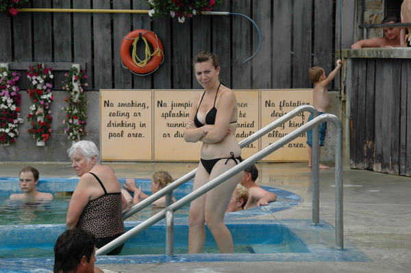We stopped at Ainsworth Hot Springs, where Meld wanted to take the waters and an unimpressed Rosie was persuaded to join her.
